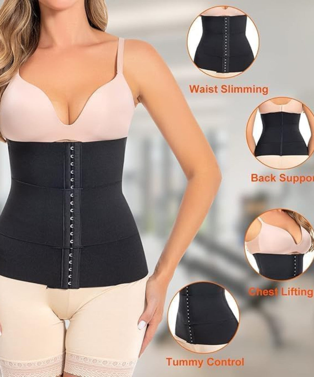 Get a smooth, confident look with our Seamless Hook Shapewear Tummy Belt for Women. Designed with 3 rows of adjustable hooks and flexible steel bones, this waist trainer offers firm tummy control, strong back support, and a slimmer silhouette instantly. Made from breathable, stretchable, skin-friendly fabric, it’s comfortable for daily wear, workouts, post-partum recovery, or special occasions.